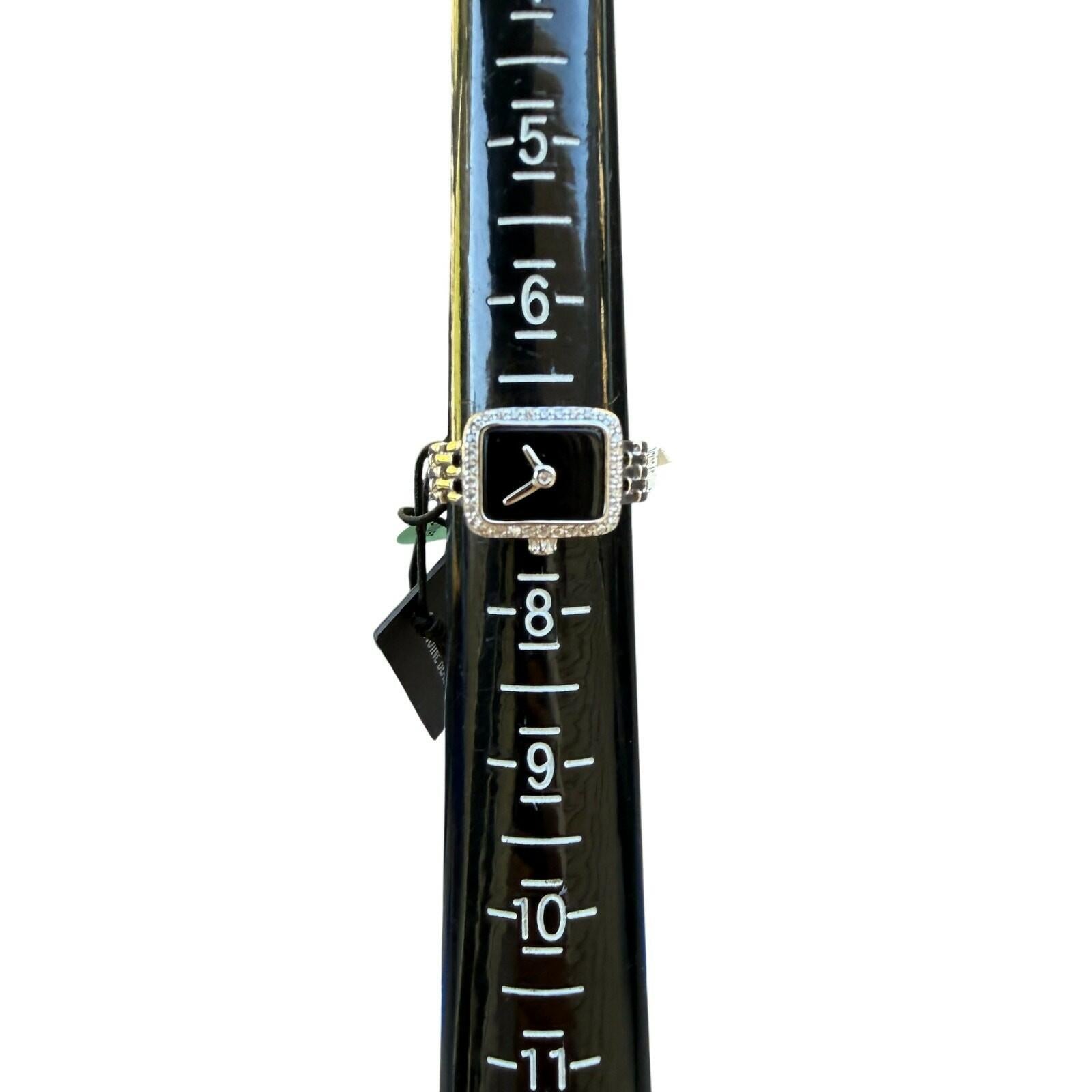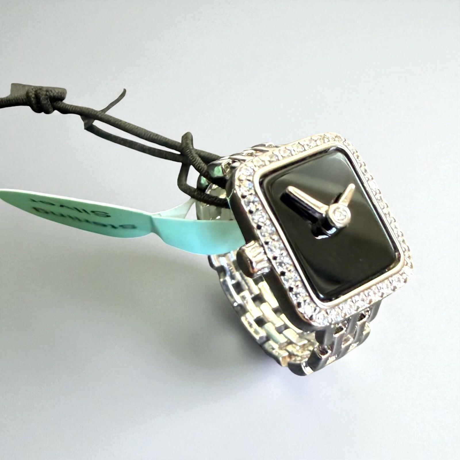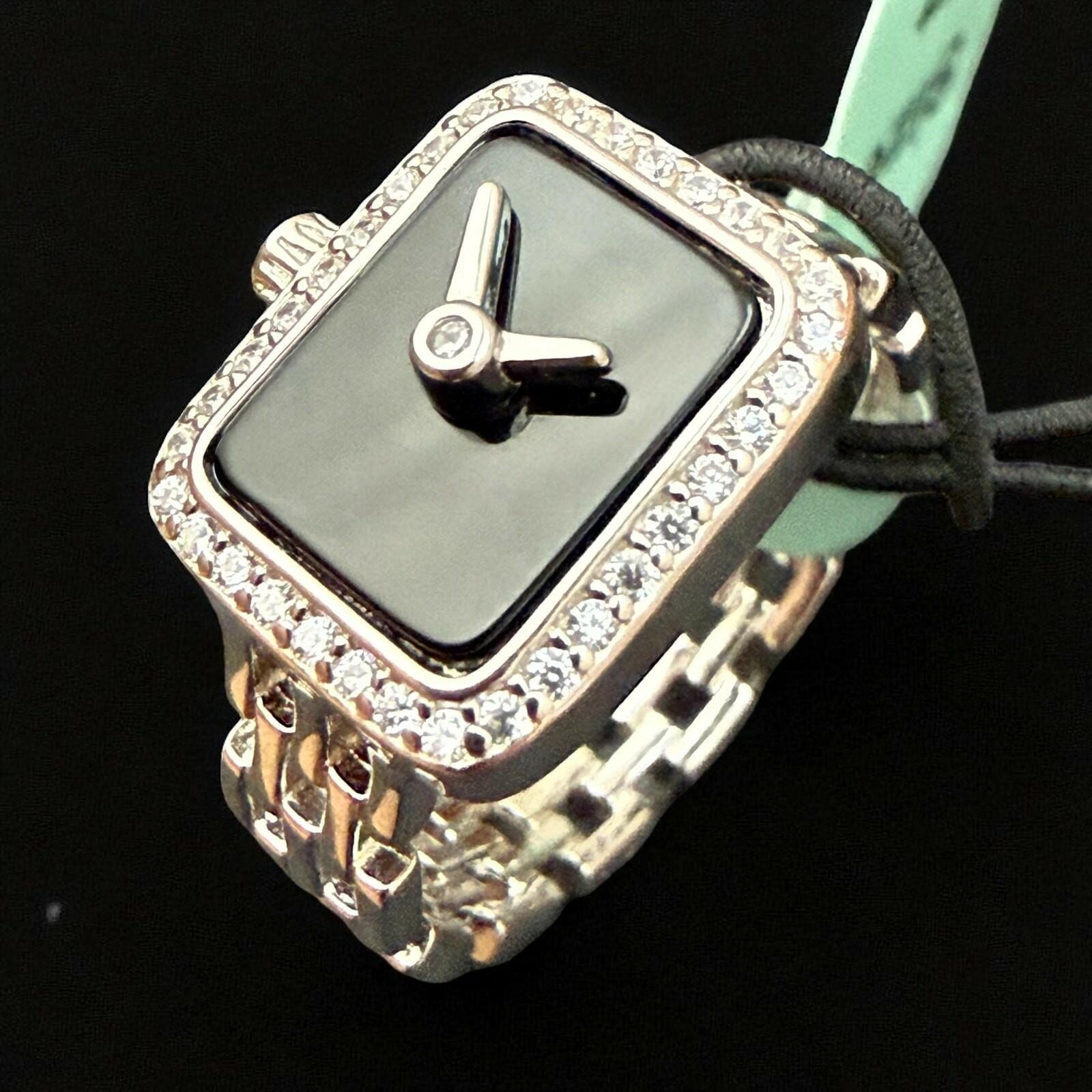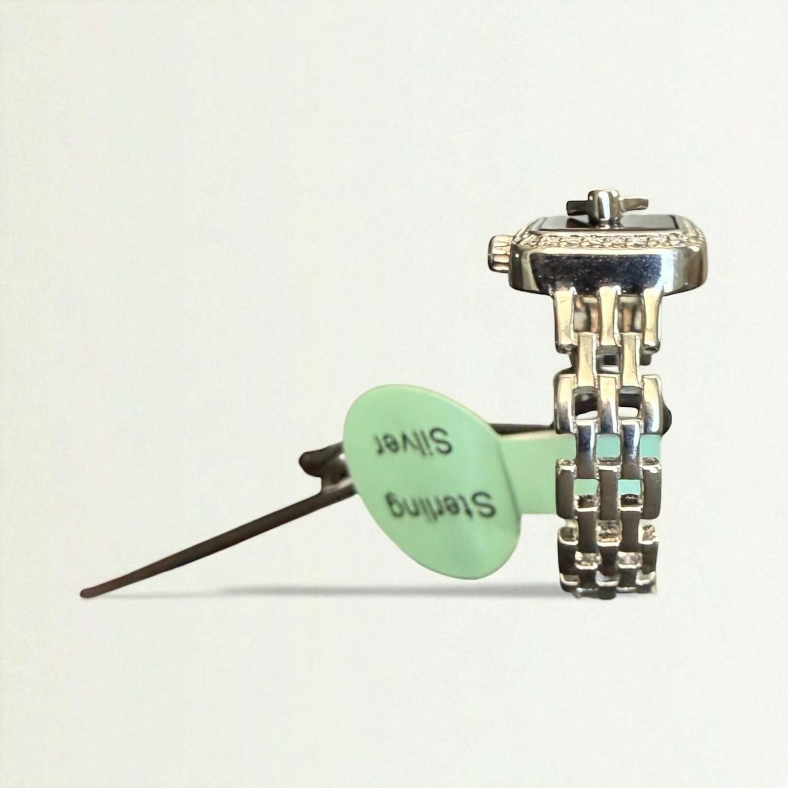 This genuine Black Onyx ring combines bold beauty with whimsical charm, styled to resemble a miniature wristwatch. Set in polished sterling silver and trimmed with a sparkling crystal border, this eye-catching design is a true conversation starter.